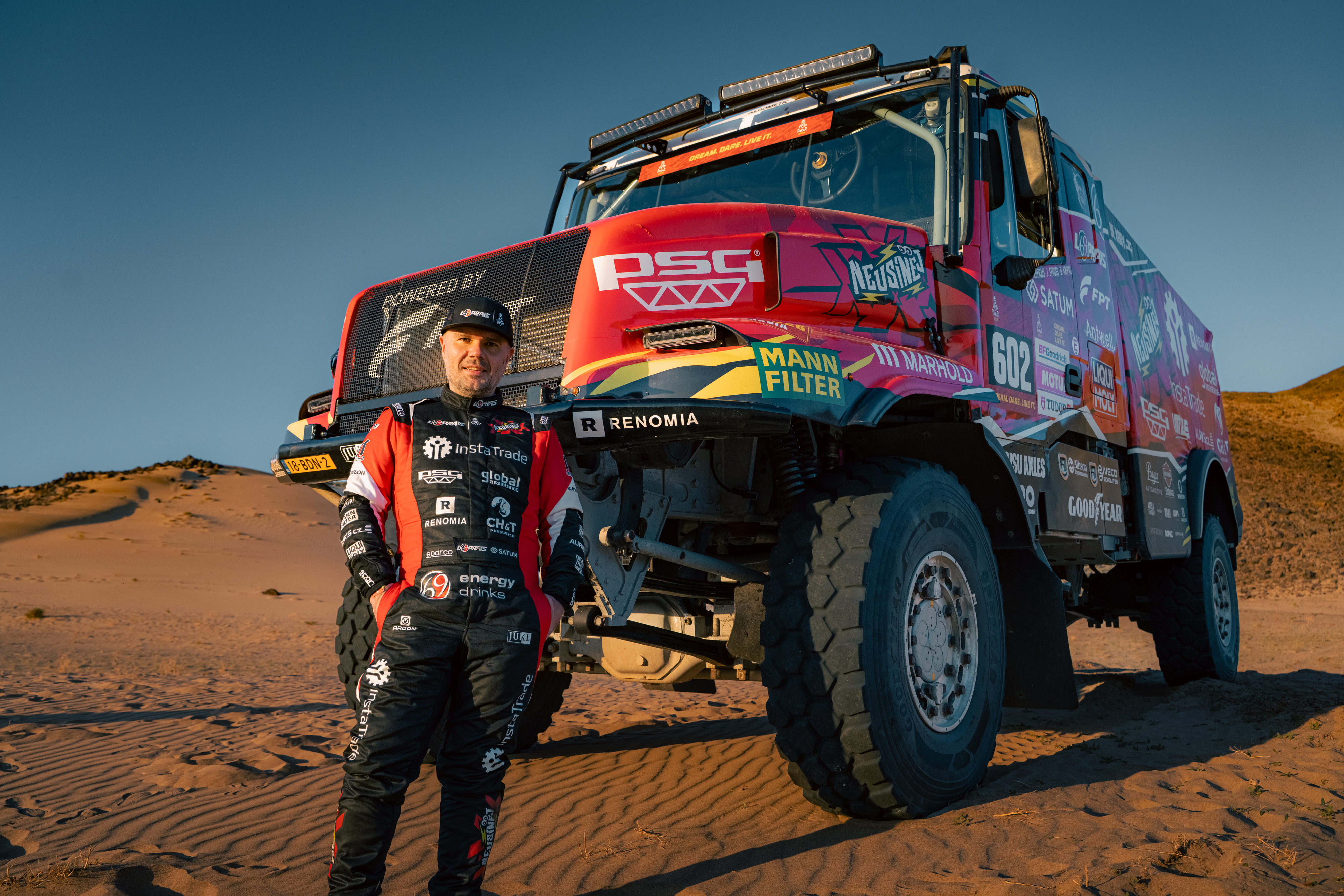 Dakar 2026 was the culmination. The Red Dragon truck, in red and gold livery, ran a dramatic race: five stage victories, a collision in the dunes, a rollover on stage twelve, but relentless fighting to the end. The result was second place overall, a second “silver”, and confirmation of the team’s world‑class status.